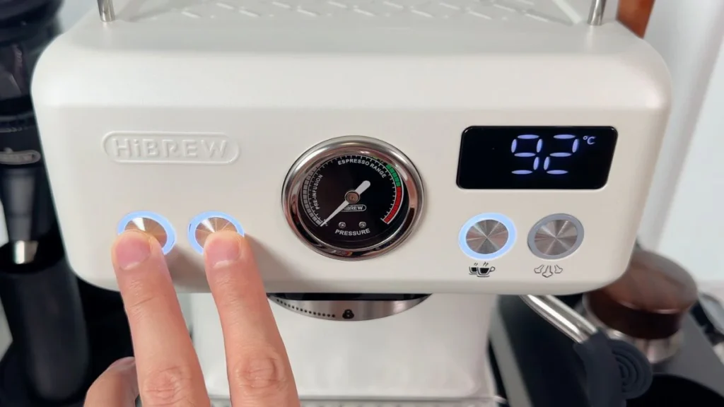 Most espresso machines have a pressure gauge on the front panel showing real-time brewing pressure.
